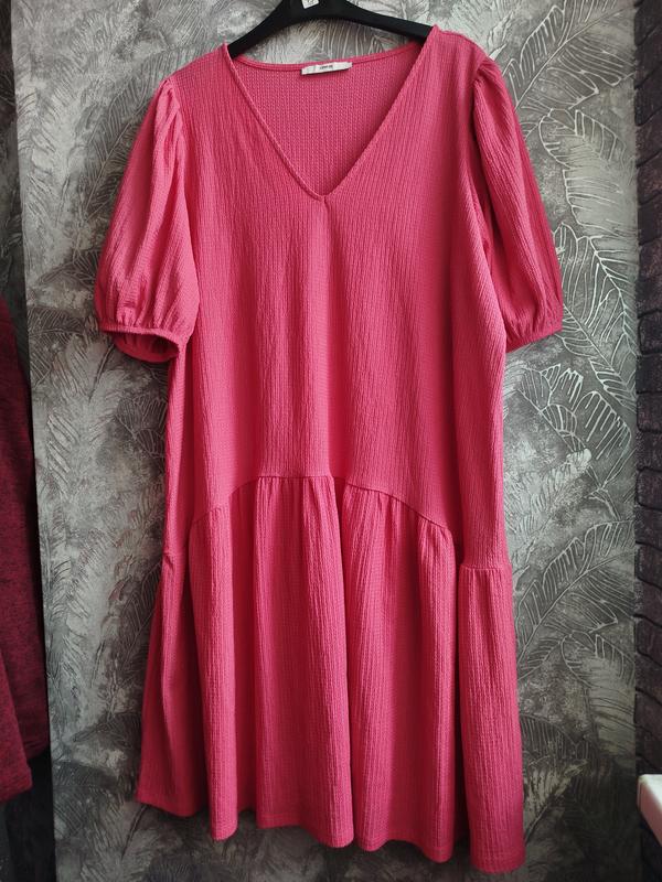 Интересное платье, ткань жатка, имеет стрейч, объемный рукавчик, свободная юбочка Замеры: ог 128см, об 200см, длина 102см