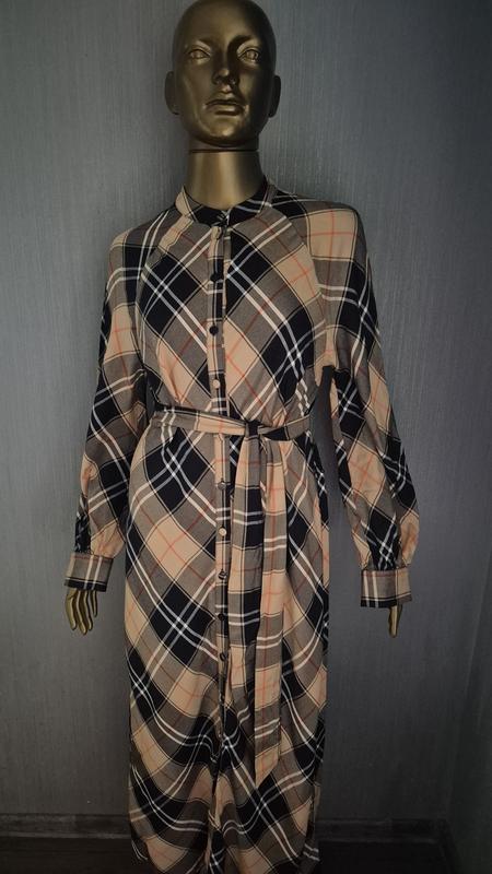 модное платье в клетку h&m размер 34 длина127 рукав 72 от горловины пог 54