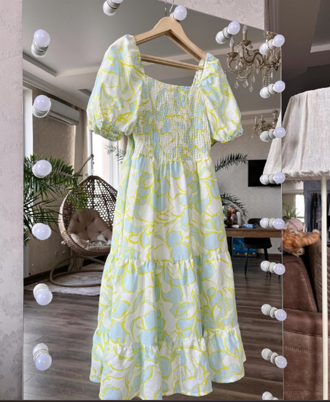 Льняное миди макси платье Marks&Spencer. Короткие объемные рукава. Грудь резинка. Ярусный фасон. Есть подкладка. Размер 12 Длина от плеча 123 пог 40-55 пот 35-50 поб 60