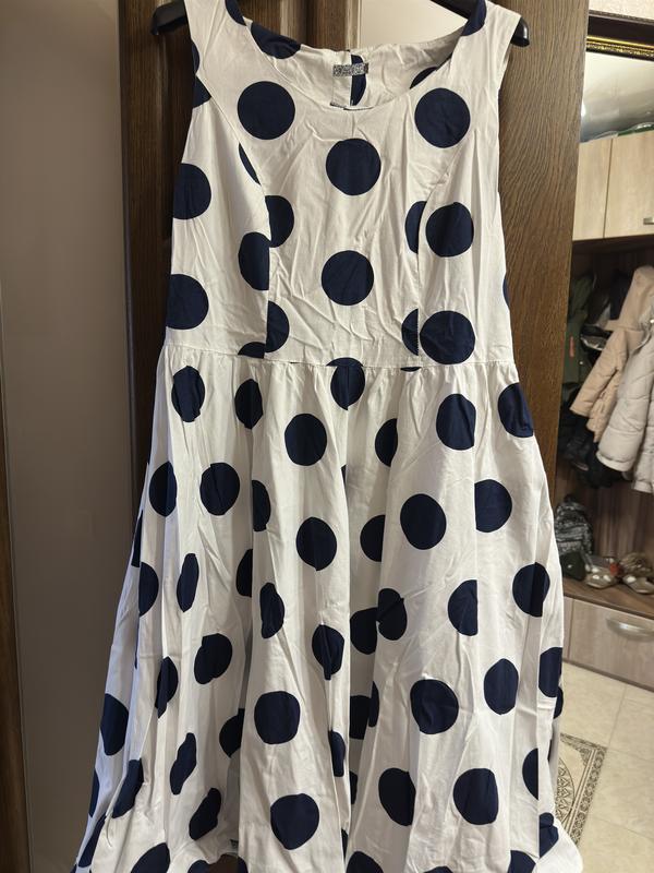 Літнє жіноче плаття В хорошому стані Біле з темно синіми кругами