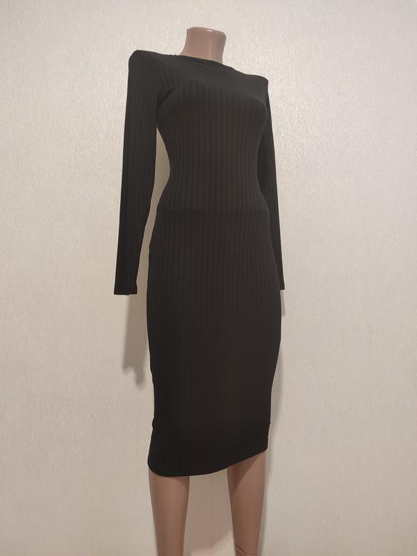 Секонд высокого класса, стильные и качественные вещи известных брендов. Красивое платье миди в рубчик, приятная ткань, без застежки, стрейч. Заміри на фото.