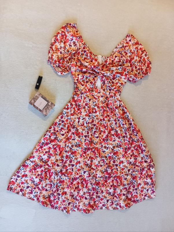 Красивое женственное качественное платье миди в цветочный принт с пышной юбкой Shein M сзади на молнии,плечи и рукава снизу на резиночке длина 110 см длина рукава 28 см полу обхват груди 45-50 см полу обхват талии 37-38 см полу обхват бедер 70 см