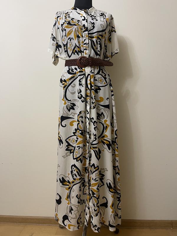 Жіноча сукня - сорочка 16/44 розміру. Віскоза. Бренд Big Dart. Плечі 43 см, ПОГ 66 см, ПОТ 63 см, ПОС 71 см, довжина 132 см, рукав від горловини 33 см, ширина рукава 20 см. На ґудзиках. Втрачено пояс, інших дефектів немає.