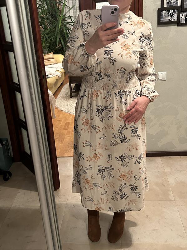 Сукня підійде на розміри 14 - 16. З підкладом одягнута на параметри 100-84-107 ріст 170. Ног57 Ноб 62 Довжина 130
