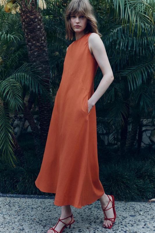 Лляна віскозна міді сукня плаття сарафан льон віскоза zara льняное миди платье сарафан лён...
