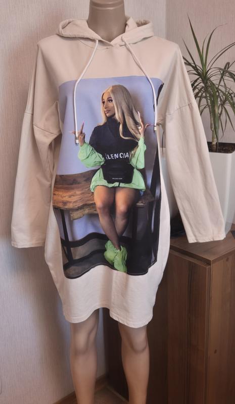 Платье худи. Размер 46-48. ПОГ 60 см. ПОБ 61 см. Длина по спине 90 см.Спереди укороченное. Плечи приспущенные 76 см. Рукав 42 см.. Состав 95% коттон, 5% эластан.
