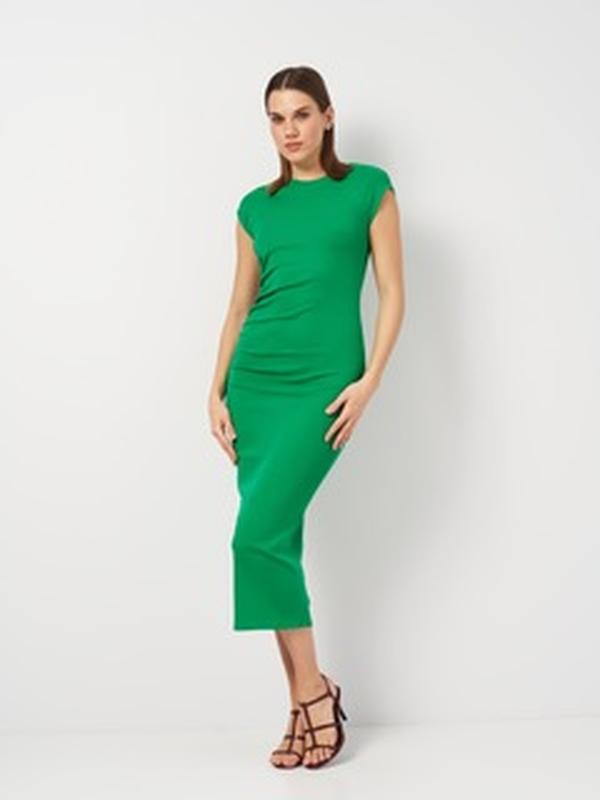 Трикотажна сукня міді зеленого кольору. Приталений силует, округлий виріз, при зібрана з одного боку на талії. Зручна та стильна у будь який сезон. РОЗМІР: S ЗАМІРИ: довжина 118 плечі 44 пог 44/56 пот 31/46 поб 40/60 СКЛАД: бавовна СТАН: ідеальний ➖➖➖➖➖➖➖➖➖ Речі в наявності👗🧥👠 Фото на собі не роблю. 🙅♀️ Відправка: НП, Укрпошта📦 Всю необхідну інформацію надам😊 Перегляньте інші мої оголошення та об’єднайте їх із спеціальною знижкою.🫶