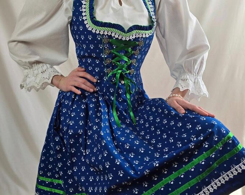 Меди-дирндль, длина до колена, зеленый/темно-синий, размер 38, отличное состояние