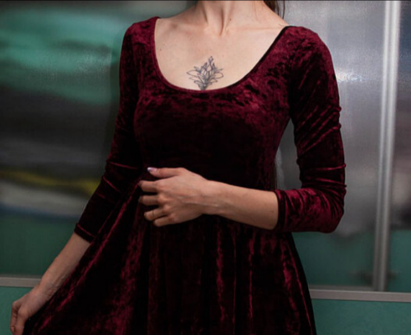 Платье из мягкого и приятного к телу бархата, тянущегося цвета спелой вишни. Линия талии завышенная, свободный крой. Производство Англия. ПОГ 48 ПОТ 40 ПОБ 58+ (безразмерный...полусолнцлеш) ДОВЖИНА РУКАВА 60 ДОВЖИНА 85