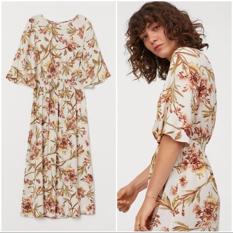 Сукня міді в квітковий принт h&m , талія на резинці 📍Розмір -42 📍Довжина -118 📍Пот -36 (50) 📍Пог- 54