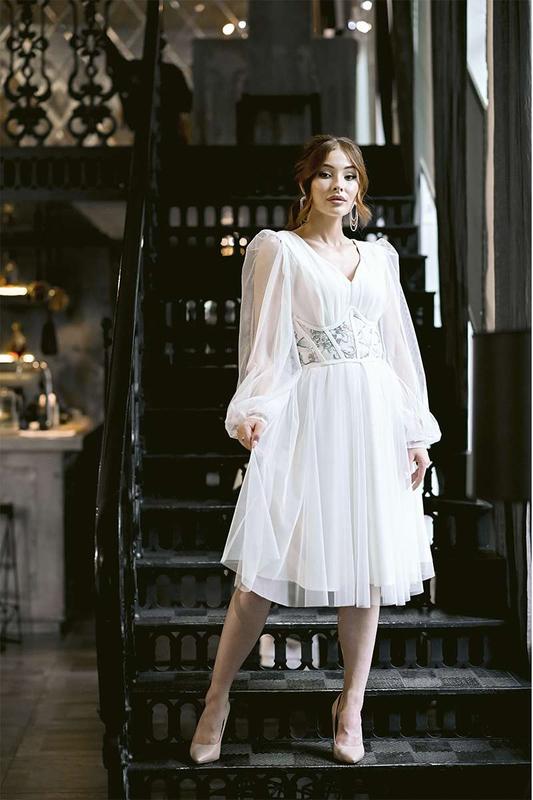 Роскошное белое платье миди с корсетом на свадьбы, роспись, выпускной вечер, для дружок, н...