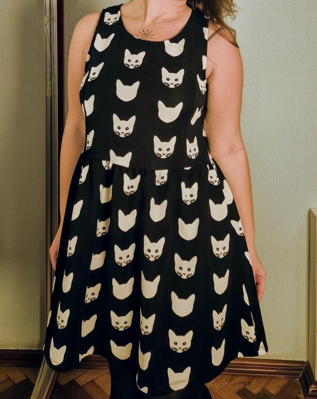 платье с котиками черно белое, легкий размер Л, красиво и на М, длина от плеча 90 см есть новая почта наложенная укр почта пишите только сюда