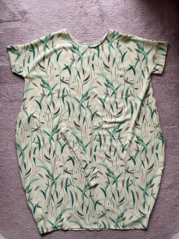 Сукня міді з крепу з, колір зелене листя. Розмір one sise, зроблений в Україні, без бірок. 100% поліестер, сукня дуже вільна, пояс в комплекті, два бічні бокові кармани. Параметри довжина 125 см, ширина підмишками 77 см, ширина виробу 90 см.