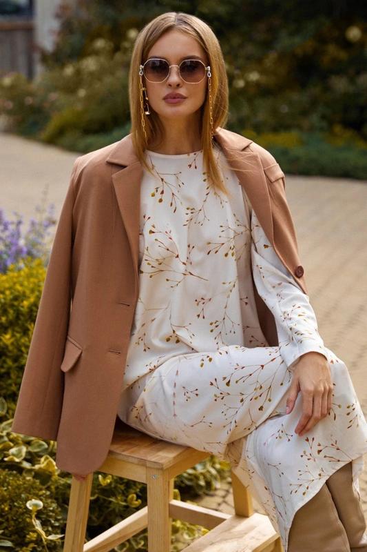 Сукня з розрізом міді софт квіти на бежевому унікальна й оригінальна завдяки своєму незвичайному дизайну. Основний елемент сукні — розріз, який надає їй елегантності та жіночності. Квіти на бежевому тлі створюють ніжний і романтичний образ. Ця сукня дозволить легко підкреслити жіночність, тому чудово підходить для формування романтичного лука. Модель поєднується з різними аксесуарами, завдяки чому навіть на основі однієї речі зможете створювати різноманітні цікаві образи. Ви можете носити її з туфлями на підборах або сандалями на плоскій підошві, додавши шкіряну сумочку або клатч. Це ідеальний вибір для тих, хто хоче виглядати стильно й елегантно.
