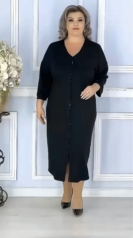 Сукня 313 Размер: 52-54, 56-58, 60-62, 64-66 Цвет: черный Ткань: крепдайвинг Элегантное, лаконичное платье, ткань тянется. Идеальный вариант, как на каждый день, так и на праздник. Тонкая полоска из впаянных камней на ленте, вытягивает силуэт. Прямой крой, V- образный вырез горловины, рукав 3/4. Платье, которое станет самой любимой в гардеробе. Замеры ✅52-54 Обхват грудей: 112 см Обхват стегон: 120 см Длина рукава: 33 см Длина изделия: 115 см ✅56-58 Обхват груди: 120 см Обхват стегон: 128 см Длина рукава: 33 см Длина изделия: 118 см ✅60-62 Обхват груди: 128 см Обхват стегон: 136 см Длина рукава: 33 см Длина изделия: 118 см ✅64-66 Обхват груди: 136 см Обхват стегон: 144 см Длина рукава: 34 см Длина изделия: 122 см #Одеждукраина #женовременность