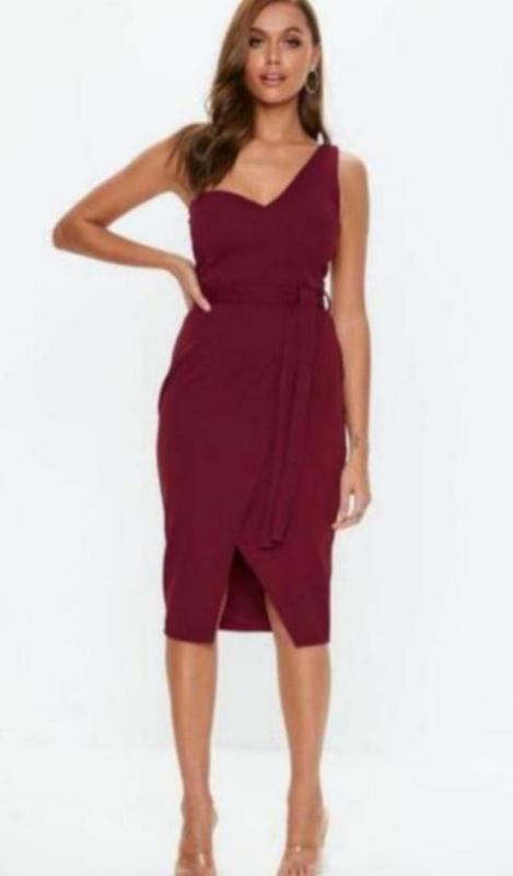 Платье миди на одно плечо. Размер 14. Платье с поясом. замеры пог 41-50 пот 39-42 поб 50-57 длина 105
