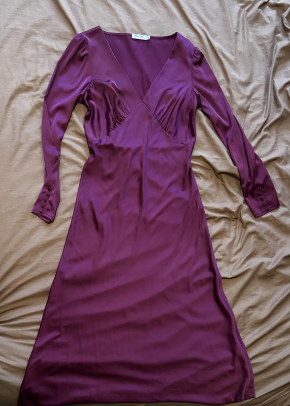 Продам сукню, український бренд, колір сливові-фіолетовий, одягнена 1 раз на весілля, стан ідеальний, розмір М, гарно підкреслюється груди, довжина міді, заміри по запиту