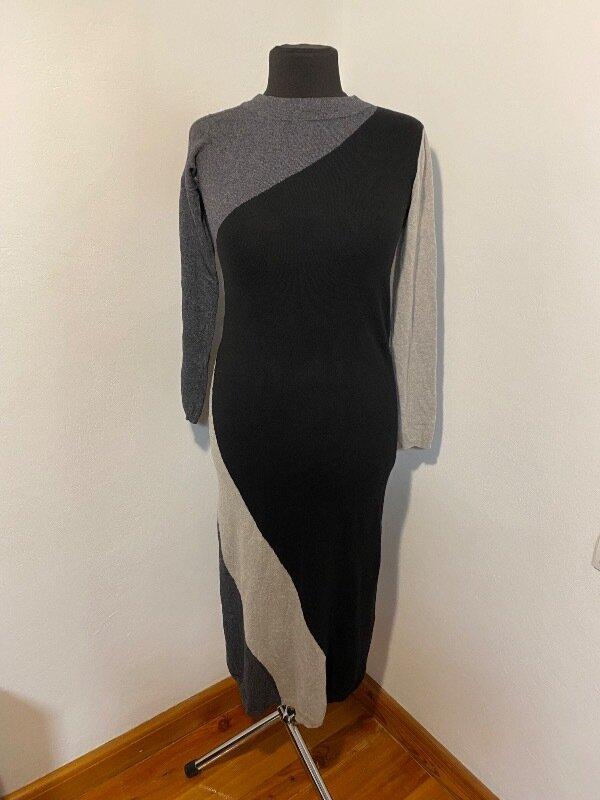 Осеннее длинное платье с разрезом на правом плече. Размер С указан, демонстрировано на манекене 52 размера. Со два раза приключился. Длина - 120см, рукав от горловины - 62см, пог - 44см, пот - 43см, поб - 48см.