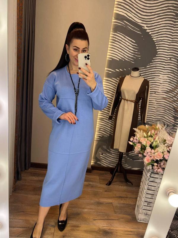 элегантное трикотажное платье миди прямого кроя с круглым вырезом на груди и длинными рукавами - главный фаворит среди платьев в осенне-зимний сезон, оно отлично сидит по фигуре, подойдет для работы и досуга, легко сочетается с аксессуарами, обувью и верхней одеждой разных цветов, благодаря своей однотонной расцветке, платье декорировано стильными выстроченными линиями, которые визуально делают вашу фигуру стройнее размер оверсайз 48-52 длина 120 см, объем груди по изделию 108 см тянется до 118 см, объем бедер по изделию 108 см тянется до 122 см, длина рукава от шеи 72-74 см код 0634