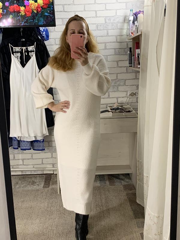 Чудове, ніжне, тепленьке плаття в ідеальному стані! Акрил, поліестер і еластан. Розмір М По грудях 49, стегна 47, рукав від горловини 71, довжина 119 см