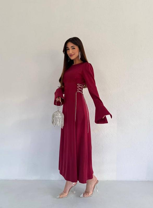 Модель 5608 Жіноча сукня Розмірний ряд S,M,L,XL Тканина якісний подвійний шовк , не плутати з тонким Кольори чорний, молоко, червоний, бардо та шоколад По бокам сукні дуже гарні блискучі шнурки з камінням Стильна, нарядна та дуже класна модель Застібаєтся на блискавку Супер якість Ціна 1050 грн.катр