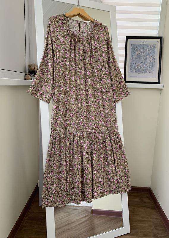 Платье в цветочный принт Размер XS подойдет на S/М Полуобхват груди 55 см Свободный крой Длина 119 см Рукав от горла 60,5 см Талия и бедра свободно Материал: вискоза Состояние: новой вещи
