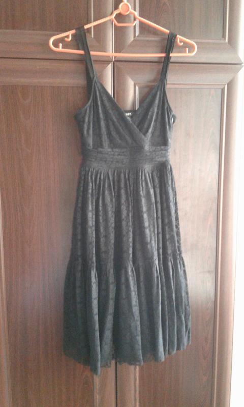 Платье летнее черное гипюровое кружевное с бретельками и ярусной юбкой dkny