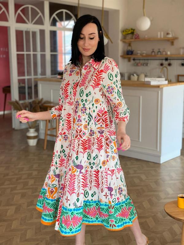 ❗️ціна 545 грн❗️ Красива невагома ярусна сукня з оригінальним яскравим орнаментом Zara Xs Пог 46 см Довжина 124 см Рукав 53 см Стан новий