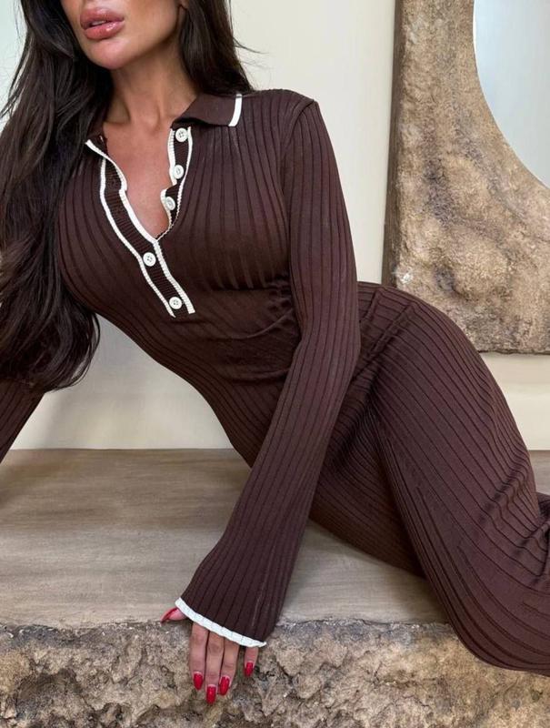 Сукня 🏷️Ціна 1205 грн ▫️Модель: 148-1457 ▫️Виробник Туреччина - вʼязка (відмінної якості👌) ▫️Колір: шоколад та чорний . ▫️Розмір: універсальний 🤎В’язана сукня міді, що ніжно облягає фігуру та підкреслює силует. Глибокий V-виріз із контрастною білою облямівкою та сорочковий комір додають образу витонченості. Довгі рукави з делікатними манжетами, щільна рибана в’язка робить сукню ідеальною для стильних образів. Елегантність, яка говорить сама за себе ✨