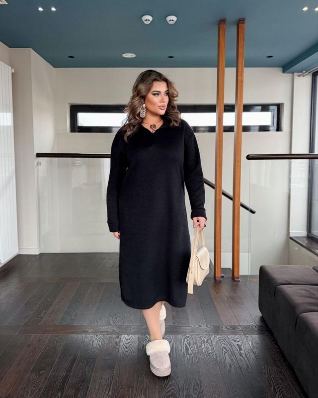 Модель № 771. Осенне-зимнее теплое прогулочное платье. Платье, длина ниже колена, с длинным рукавом, воротник стойка, спереди молния. Ткань итальянская вязка, очень приятная к телу, ткань немного тянется. Цвет: Черный, Шоколад, Слоновая кость. Размеры 50-52, 54-56, 58-60. Цена 900 грн