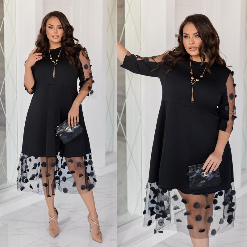 Сукня 🩷 Модель: 172/109 Размер: 48-50, 52-54, 56-58 Ткань: итальянский трикотаж+ евросетка с 3Д кружочками Цвет: черный Украшение в ПОДАРОК (дизайн может отличаться) 🏷️Цена: 1325 грн. Стильное платье выполненное из качественного итальянского трикотажа, ткань тянется, красиво садится по фигуре. ✅Замеры: 🔹48-50 Обхват груди 102 см Обхват стегон 116 см Длина изделия 123 см Длина рукава 44 см 🔹52-54 Обхват груди 112 см Обхват стегон 132 см Длина изделия 124 см Длина рукава 44 см 🔹56-58 Обхват груди 122 см Обхват стегон 144 см Длина изделия 125 см Длина рукава 45 см
