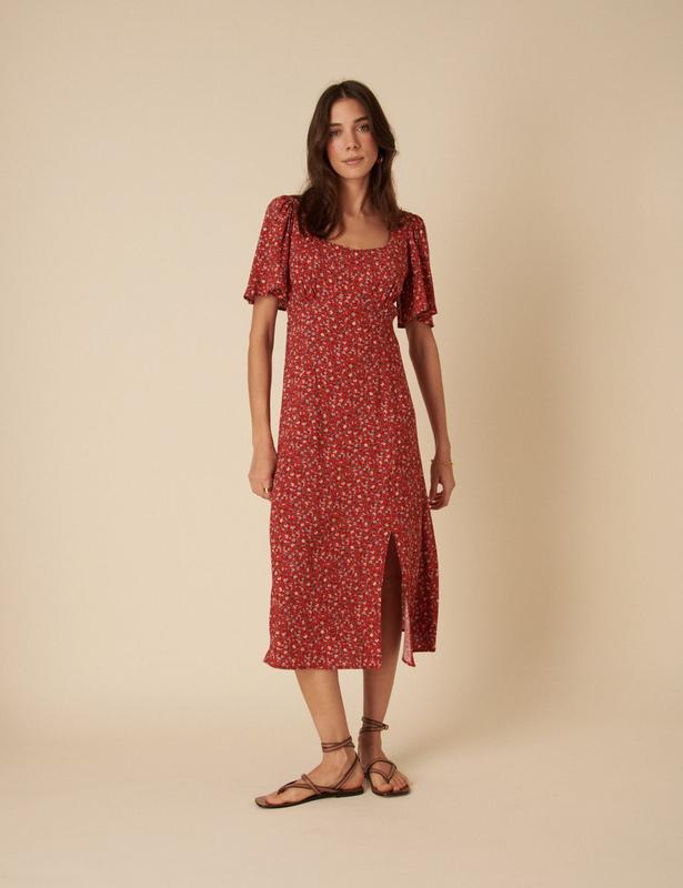 Очень красивое утонченное романтичное яркое платье с разрезом в цветочный принт