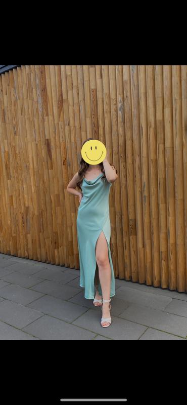 Атласна вечірня сукня Довжина міді Розмір вказаний 36, але трохи було вшито в талії Підійде на с-меншу м Довжина виробу 128 см Ріст на фото 162 см В гарному стані