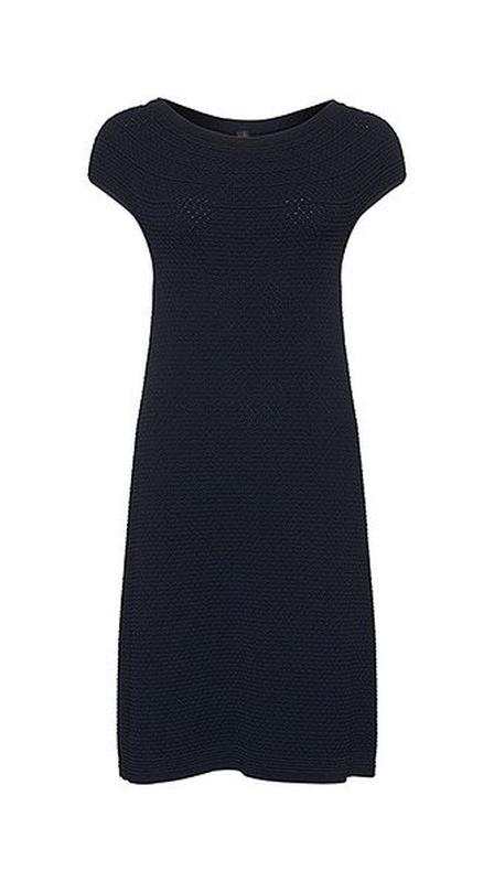 трикотажное платье Marc Cain темно-синего цвета. Длина 92 см, Полуобъем груди 42-56 см, Полуобъем бедер 51-65 см 75% вискоза