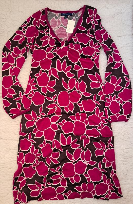 Английская марка "Boden ". Размер-8 (S). Платье сверху: Длина-101см. Ширина-42см. Длина рукава от плеча-59см. 100%- шерсть. Платье снизу: Длина-80см. Ширина-39см. 100%- вискоза.