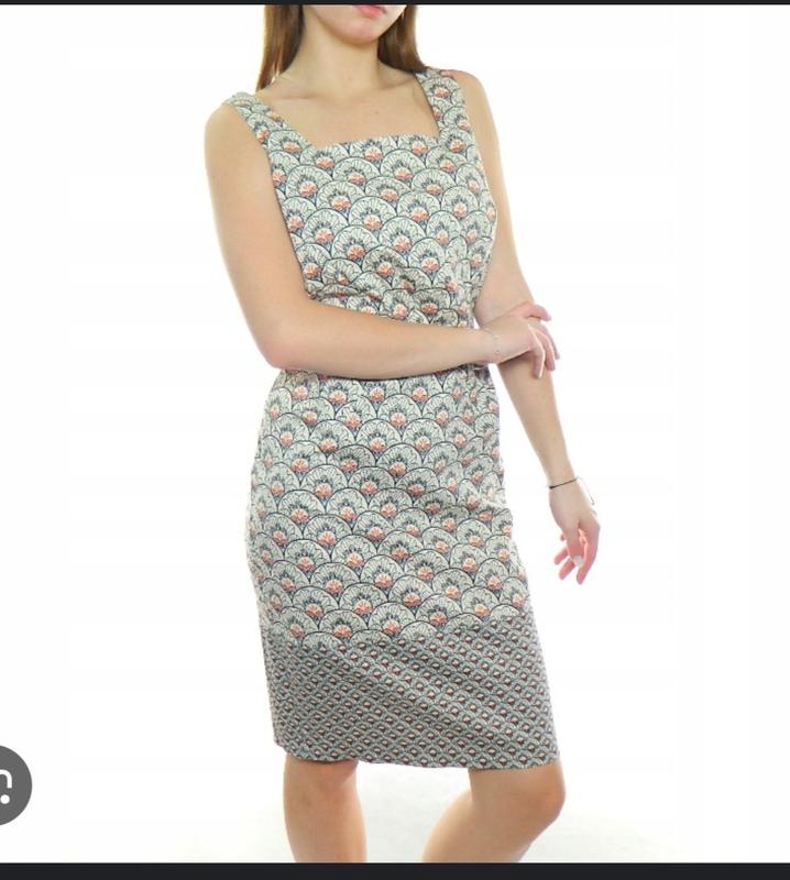 Стильное платье в геометрический принт без рукавов большого размера George Новая, с этикетками Сток, может иметь запах обработки, пойдет после стирки Элегантная, отличный крой 97%хлопок 3%эластан, ткань немного тянется для комфортной носки Интересный принт По талии отрезная Подойдет и для офиса, и на каждый день Размер 20 евро 48 Длина 102см, от верха до линии талии 40,5см, плечи 39см, под руками 57см, ПОТ 52см, ПОБ 62см