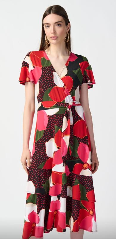 .Длина 112, полуобхват груди 50, полуобхват талии 38, полуобхват бедер 54, ткань тянется. Есть пояс, по низу платья воланы.