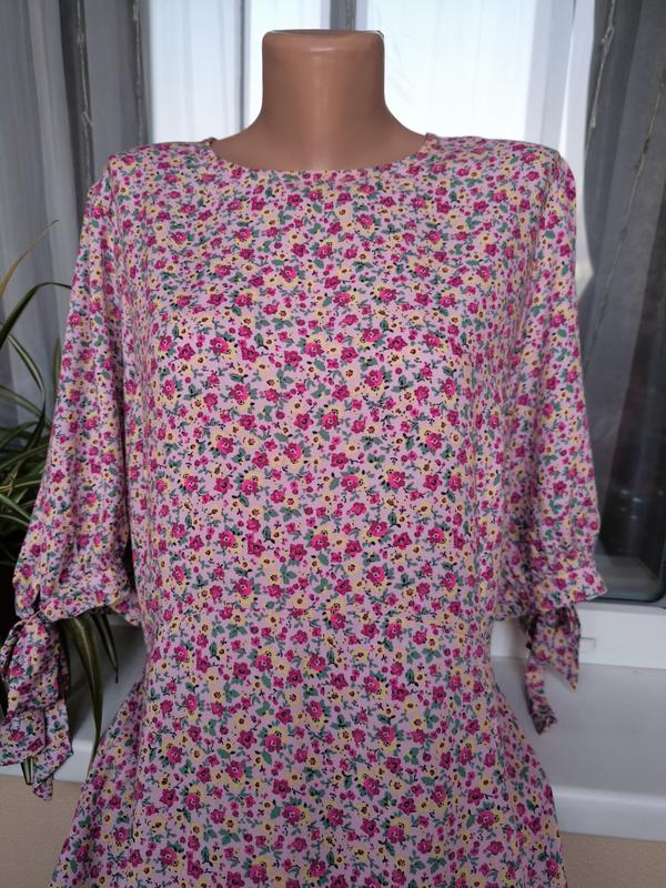 Платье миди с разрезом. платье в цветочный принт. стильное платье миди.