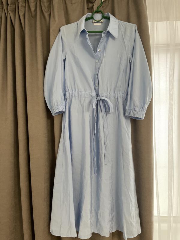 Сукня сорочка з кишенями,блакитного кольору Reserved Розмір:36 Пог:46 Пот:36(на резинці,стягується поясом) В стегнах вільно,Пос:66 Довжина:112 84%модал 16%поліестер