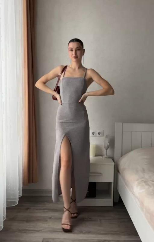 🥀Новинка🥀 Сукня Код 201 Тканина: люрекс Кольори: чорний, срібло, золото, синій Розміри: 42-44, 46-48 Вишукана блискуча сукня з переплетінням на спинці та розрізом на ніжці. Спинка відкрита та регулюється завʼязками. Тканина гарно грає на світлі✨