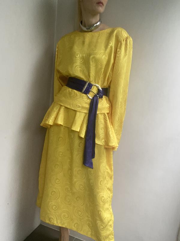 Вінтажна яскрава жовта сукня з 80х. Має характерний дизайн своєї епохи. Модель жіночна приталена та має декоративну баску на стегнах. Позаду застібається на блискавку. Склад: поліестер. Гарно зійде за нижній акцентний шар під пальто. Є недоліки, детальніше в директ ( враховано в ціні). Розмір M-L. Виміри : довжина 120 см, плечі 44 см, довжина рукава 62 см, ПОГ 57 см, ПОТ 45 см, ПОС 59 см. 🔸Без торгу🔸 🔸Передплата 100% 🔸Накладного платежу, післяплати, «безпечної» немає ❗️Відправка ТІЛЬКИ новою поштою за рахунок покупця. ❌Обмін і повернення НЕ передбачено❌ 🔸Бронь ТІЛЬКИ на проплату - 24 години. ✅Будь ласка, замовляйте тільки якщо вам підходять всі вище вказані умови. ❤️Вдалих придбань!❤️