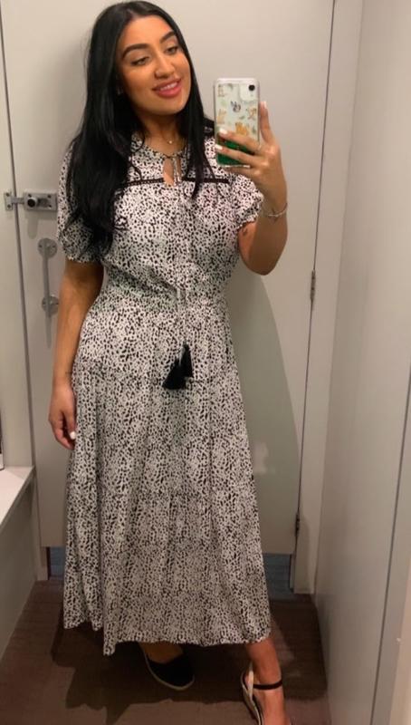 Вискозное миди с V вырезом с объемными рукавами фонариками и мягкой резиночке на талии Пог 65 пояс 45-65 бедра 75 длина до пояса 45/130