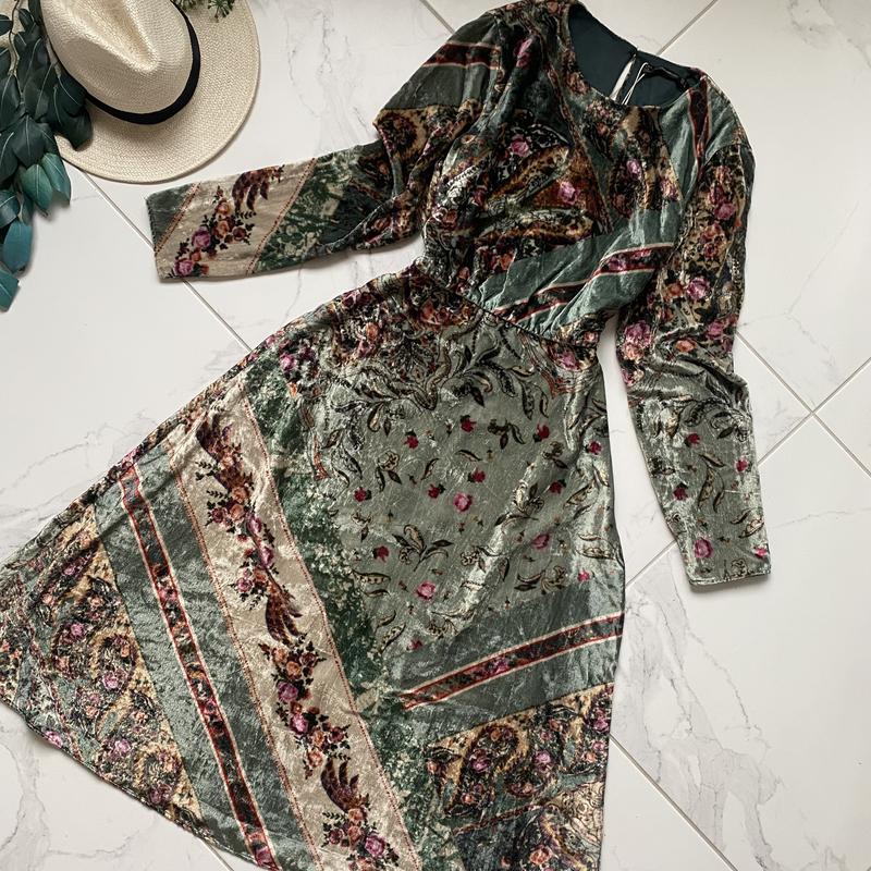 ♥️Сукня від Зар А фісташкова в принт стан ідеальний, оксамит, паперова бірка, ззаду на гудзику, гарно зі шкіряним паском р м л -довжина 115, рук 58 -нОг 49 -нОт 36-38 -нОб вільно 57 ФОТО НА ТІЛІ НЕМАЄ