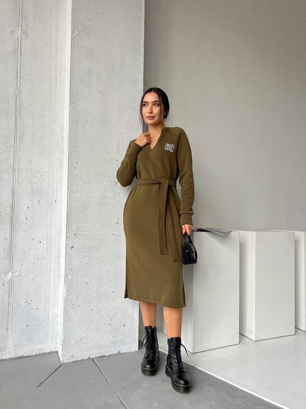 Мш 2.12 🔥НОВИНКА🔥 Сукня Модель 20/72/40/103 Тканина трьохнитка на флісі Розміри: 1(42-46), 2(48-52) Кольори: хакі, чорний, фуме Нашивка може дещо відрізнятися Є дві бічні кишені та розрізи з обох боків. Пояс в комплекті #наложка В2В