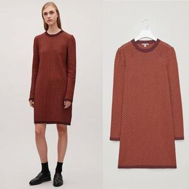 Платье выполнено из 100% хлопка. Одежда имеет коричневый вырез с круглым вырезом и узор в виде сот коричнево-оранжевого цвета. Длинные рукава с коричневыми эластичными манжетами. Новый, без бирок Рекомендованая розничная цена 69 фунтов стерлингов. Полуширина в районе груди 53-54 ПОБ 59-60, рукав 62, длина 100