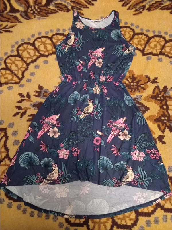 Летнее женское платье, известного бренда. Ткань-вискоза100 %., тянется. Платье легкое, мягкое и приятное на ощупь. По линии талии на резинке. Перед платья короче, а задняя сторона длиннее. Размер 48. ЗАМЕРЫ в спокойном состоянии :Пог 45см, Пот резинка в спокойном состоянии 31см, Поб 57см. Длина переда от плеча 89см, длина по спине 103см.Б/у в идеальном состоянии без дефектов