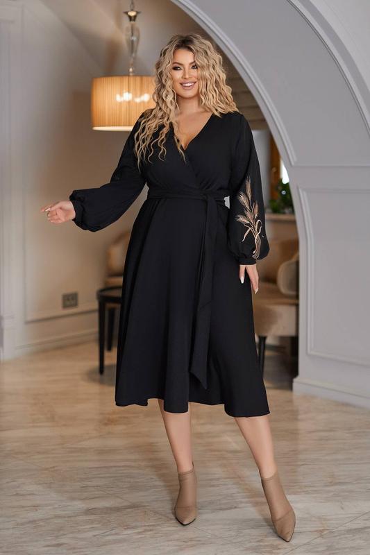 Платье женское на запах с вышивкой на рукавах, платье вышиванка батал
