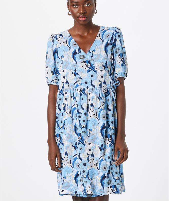 блакитна сукня в квітковий принт на запах, сукня халат, вказано розмір xxs, але підійде і на S