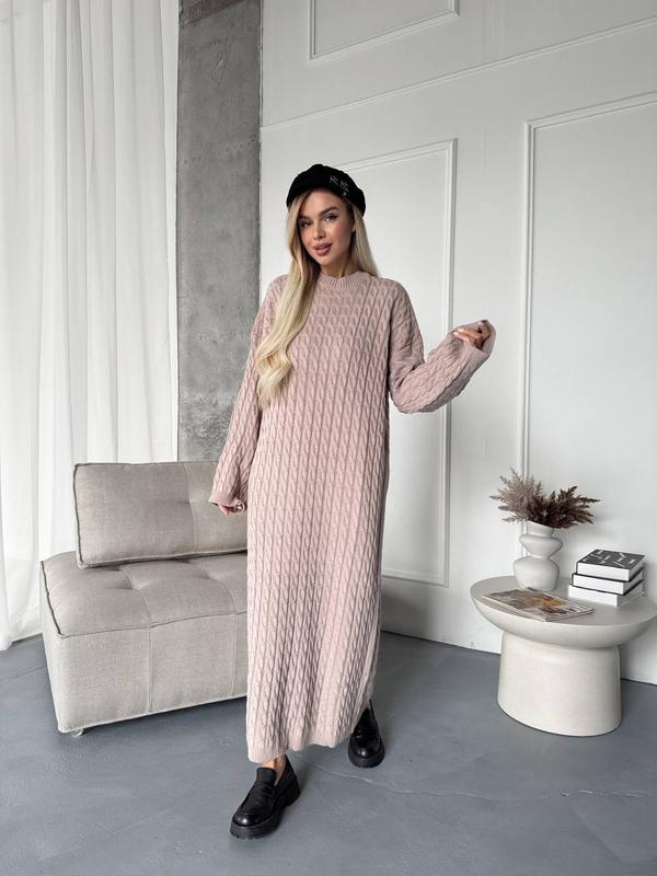 Платье выполнено из мягкой, тактильной пряжи в актуальной длине, не колется. Имеет плотную вязку, эффектно смотрится с ремешком. Самое практичное решение для холодных вечеров Арт 5006/16 • Размер универсальный: 42-48 • Цвет: бежевый 🏷️Цена: 1415 грн. Длина 133 см ПОг 62 см Рукав от шеи 80 см ❗Пояс в комплект не входет