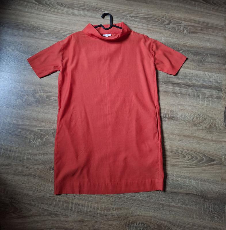Платье от Cos 🧡На модели показала такую же модель, только отвернутая горловина 🧡Кармани по швам 🧡Цвет - оранжевый 🧡Склад 60% купро, 40% бавовна Правый рукав, в зоне подмышек, чуточку пустывшая нить 📏размер EUR 38 Плечи спущены Рукав от шва горловины 37 см Под руками, полуобхв. 56 см Бедра, полуобхв. 57 см Длина 89 см